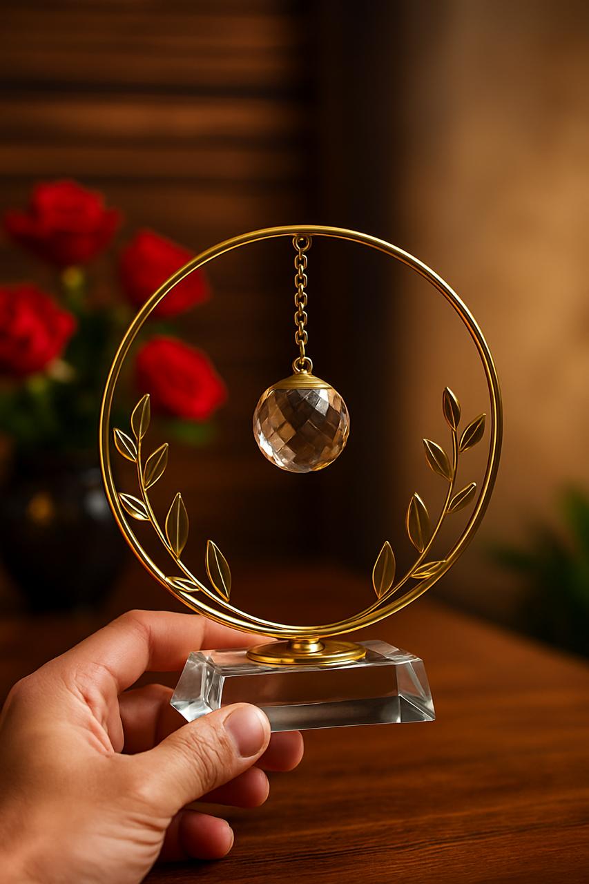 This metal ornament will upscale your home look.It is made up of a metal in which a metal pendulum is hanging having Glass ball
